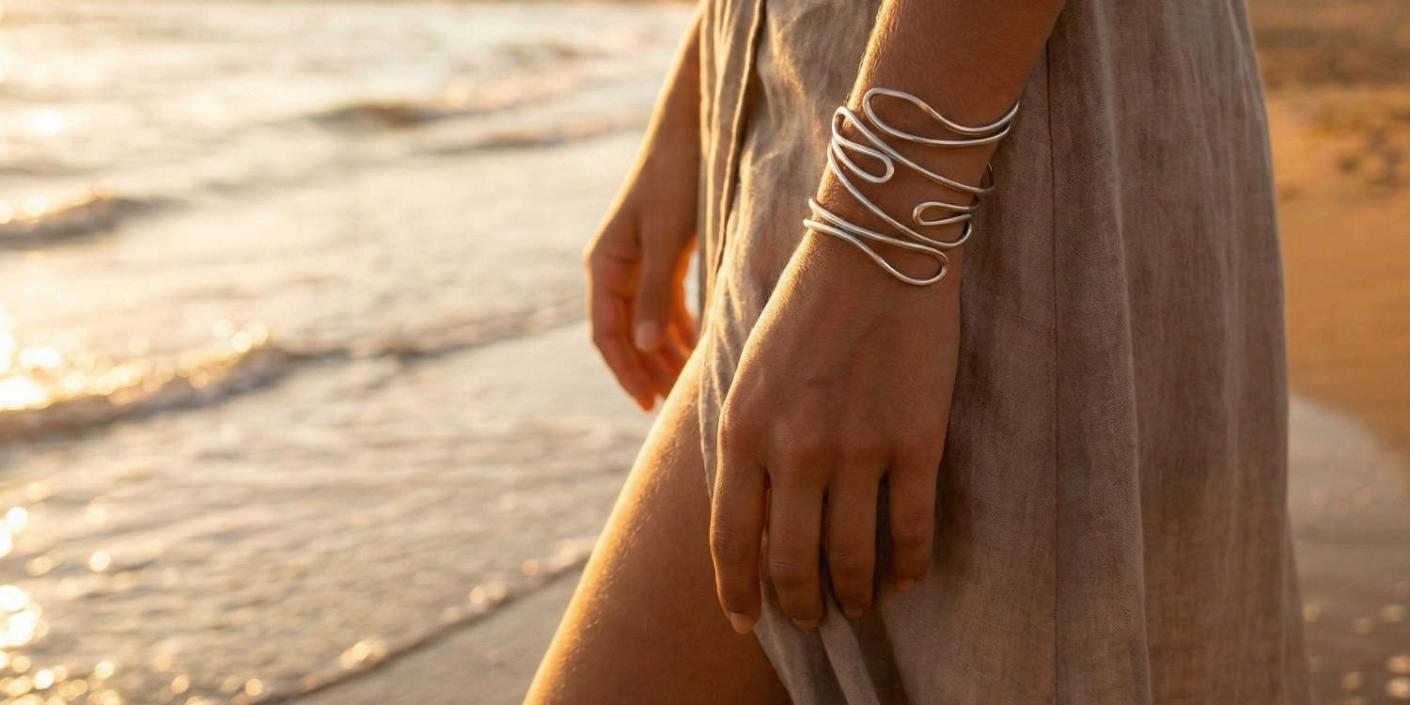 [EL_BANG_7] Coppia bracciali argento thailandese onda